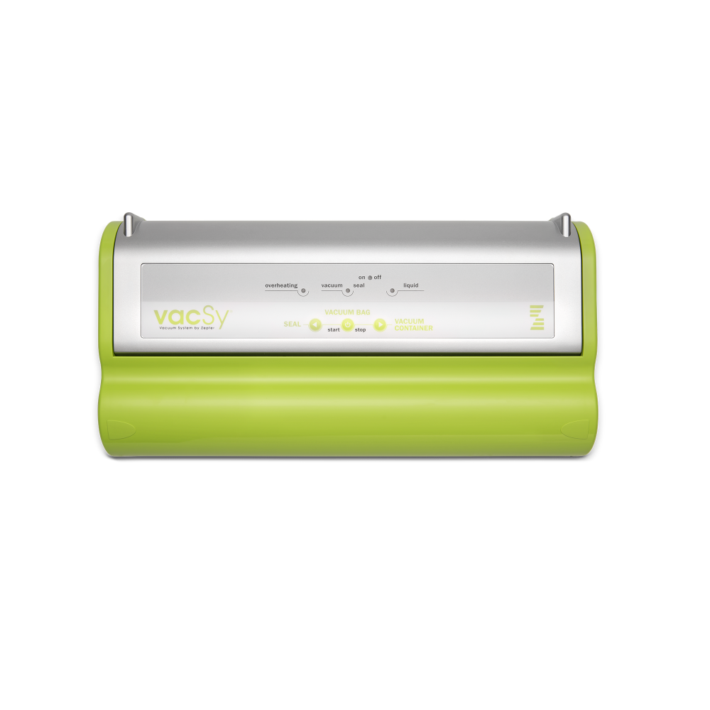 Напредналите технологии, висококачественият дизайн правят уреда за вакуумиране VacSy® по-добър от всички в своя клас. Новаторската система отстранява въздуха и влагата от специално изработените издръжливи торбички, като запечатва аромата. Запечатайте ястия с VacSy® като замразите предварително приготвените вечери, които може да затоплите през седмицата, или с дълбоко замразяване на нарязано месо, риба, зеленчуци, както и бисквитки, крекери и други закуски от кухнята.